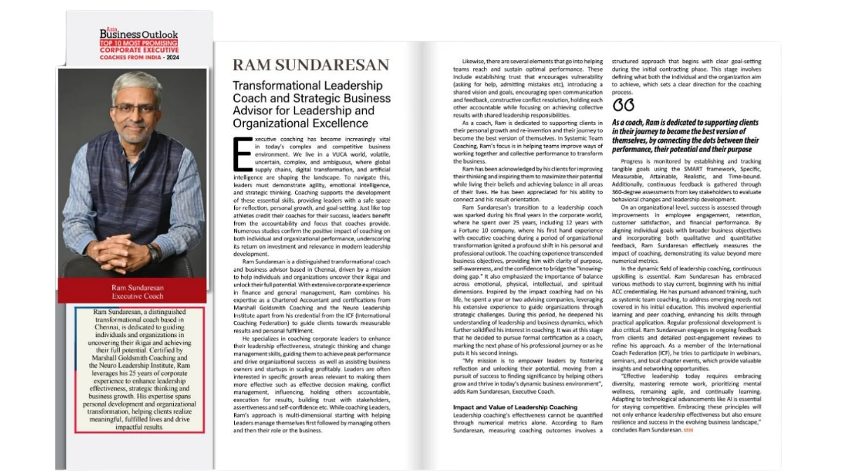 Coach, advisor and former corporate leader with 25+ years across finance and general management. Ram helps leaders bridge the gap between knowing and doing — aligning purpose with performance to create sustainable results.